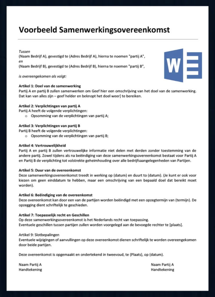 📄 Download het document om te printen Onze samenwerkingsovereenkomst PDF is een onmisbare hulpbron voor iedereen die op zoek is
